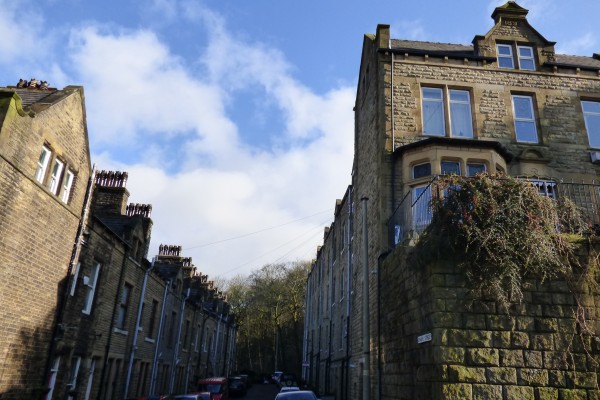 Double-decker terraces – comprising of underdwellings and overdwellings – are a Hebden Bridge speciality. Both open onto the street but at completely different levels. A unqiue form of property ownership, known as flying freeholds, developed in response to these two-part dwellings.