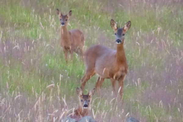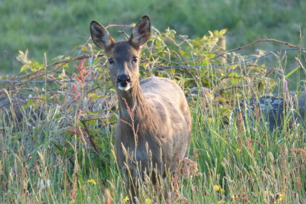 The hills and dales of the Upper Calder Valley are rich with wildlife. Large numbers of roe deer live in the woods, often venturing up onto ‘the tops’ to graze in the fields. Roe deer are regularly seen at Elmet Farmhouse. A hind has given birth to her kids amongst the long grass in the hay meadow for the last few years.