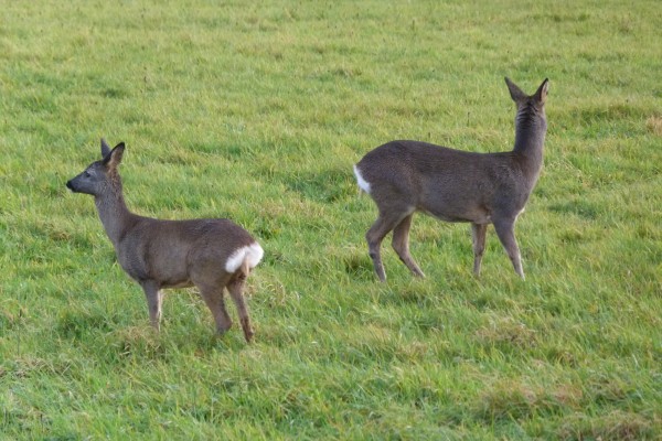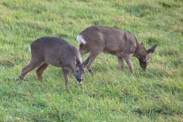 Left: Roe deer hind Right: Roe deer kid in field at Elmet Farmhouse