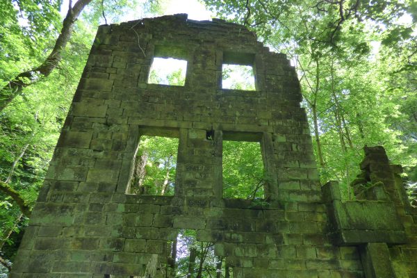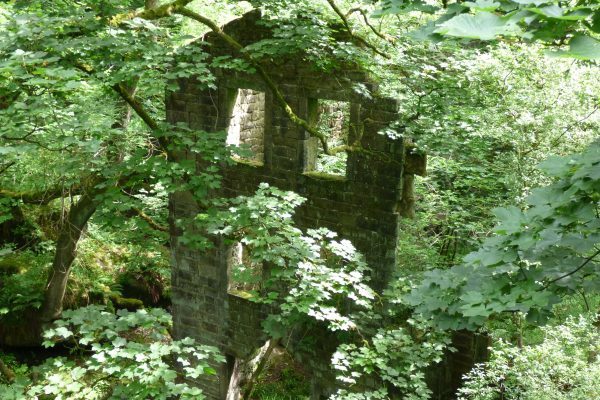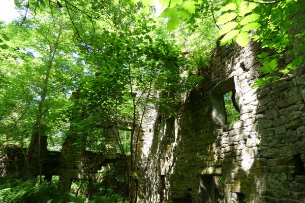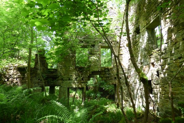 Fay Godwin photographed these intriguing ruins for Ted Hughes’s book Remains of Elmet in the 1970s. Amazingly, the building is still just about standing, although the clough itself is more overgrown than ever.